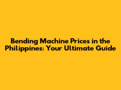 Bending Machine Prices In The Philippines: Your Ultimate Guide