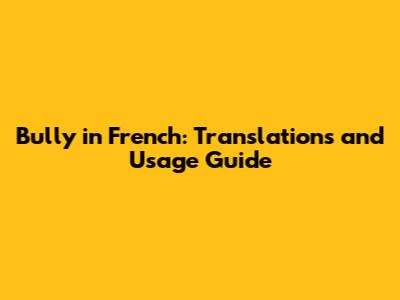 Bully In French: Translations And Usage Guide