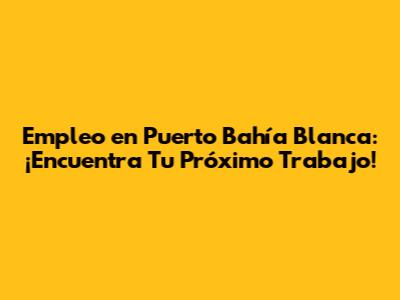 Empleo En Puerto Bahía Blanca: Oportunidades Laborales
