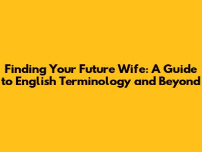 Finding Your Future Wife: A Guide To English Terminology And Beyond
