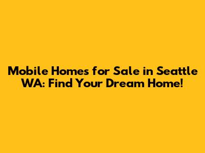 Mobile Homes For Sale In Seattle WA: Find Your Dream Home!