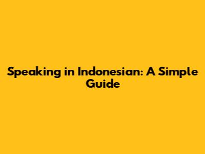 Speaking In Indonesian: A Simple Guide